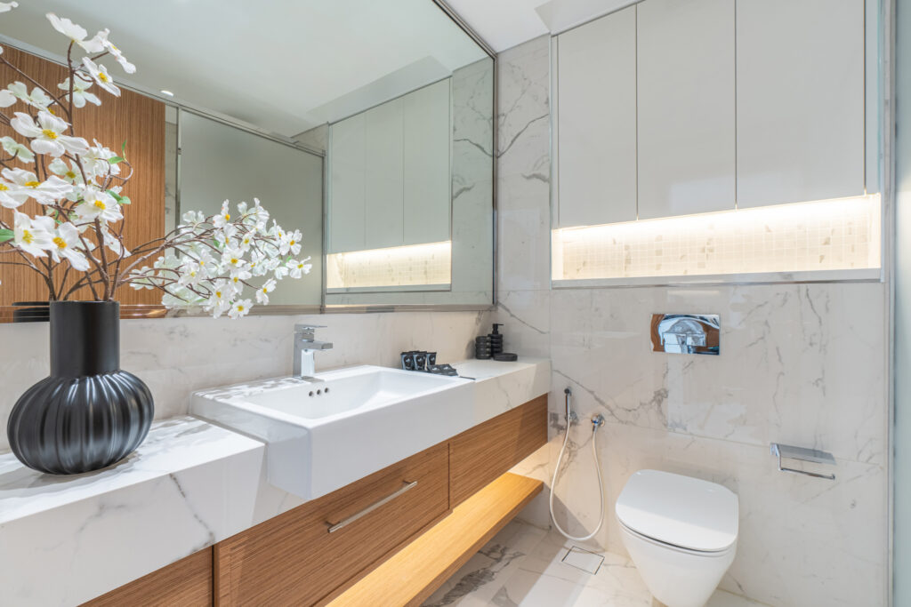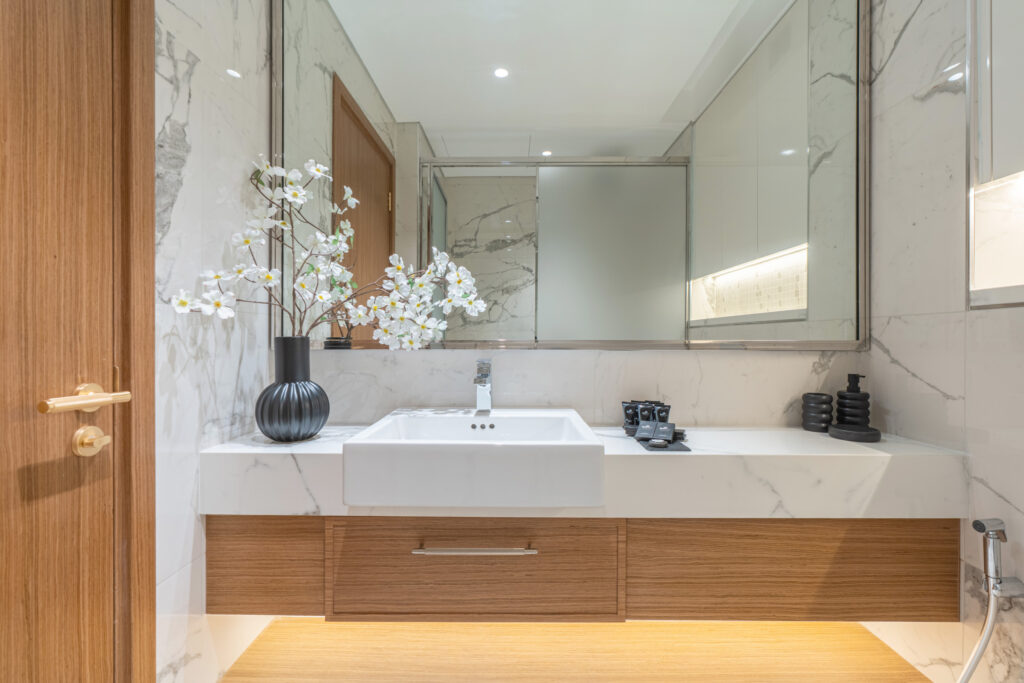 • Stylish bathroom with modern fixtures