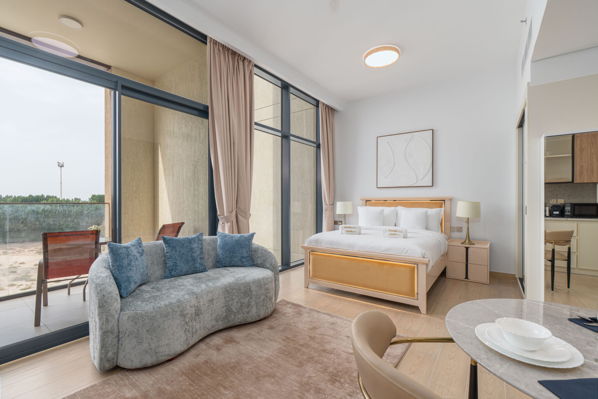 haus & haus holiday is delighted to present this Studio Bedroom Apartment in The Haven by Meraki, a contemporary residence set in the heart of Dubai’s serene Majan community.