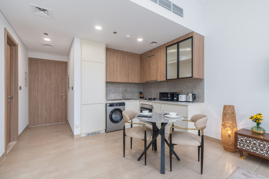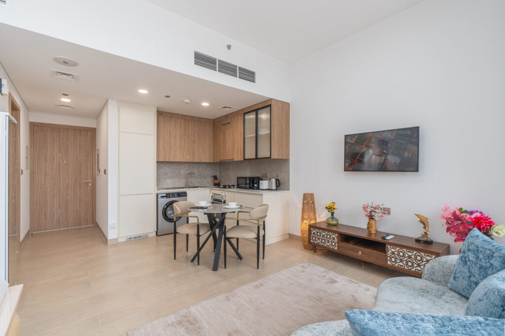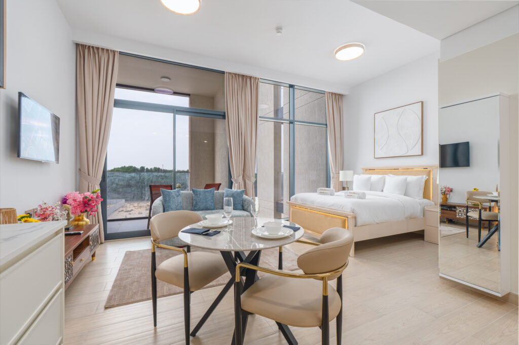 haus & haus holiday is delighted to present this Studio Bedroom Apartment in The Haven by Meraki, a contemporary residence set in the heart of Dubai’s serene Majan community.