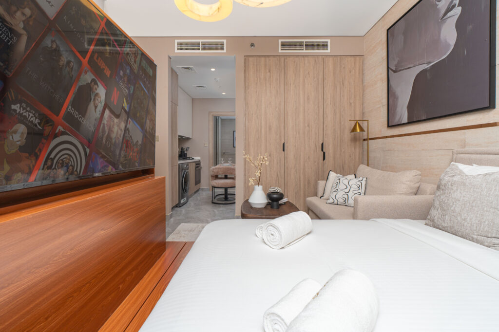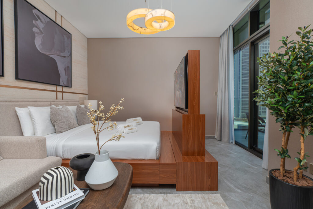 haus & haus holiday is delighted to present this brand-new Studio Apartment in Peninsula One, located in the vibrant heart of Business Bay.