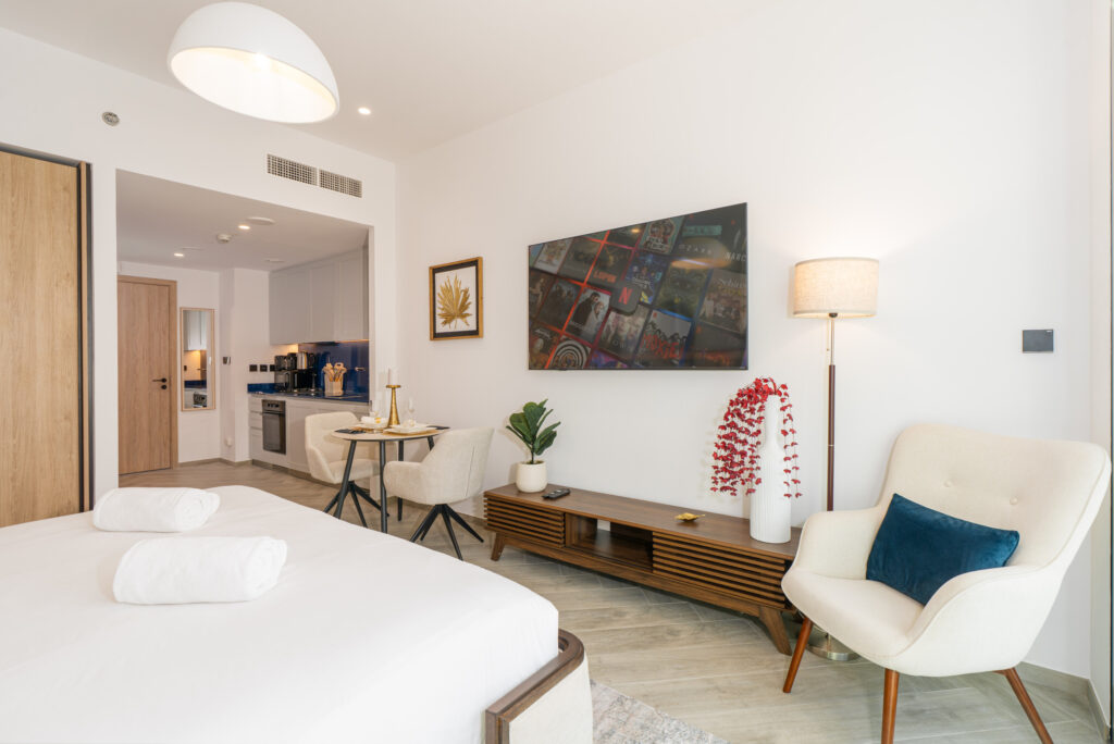 Set within one of Dubai’s most vibrant waterfront communities, this contemporary studio offers a stylish and comfortable stay in the heart of the city. Enjoy the pool and a partial view of the iconic Burj Khalifa from the balcony, adding a touch of Dubai’s world-famous skyline to your everyday experience.