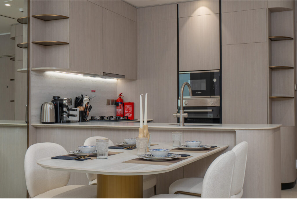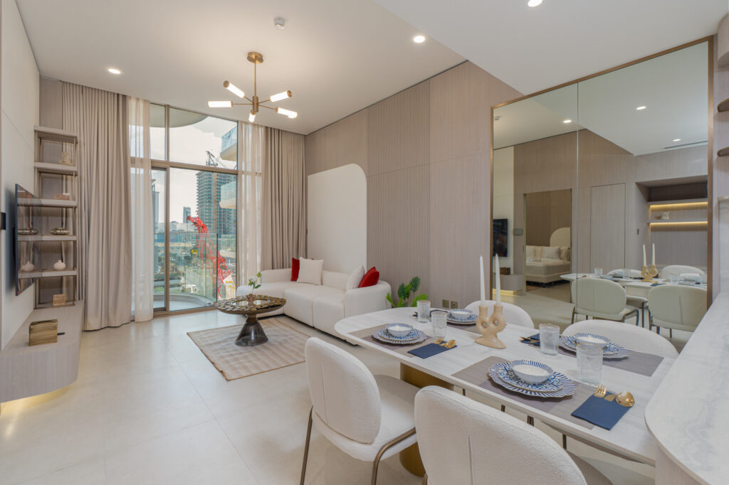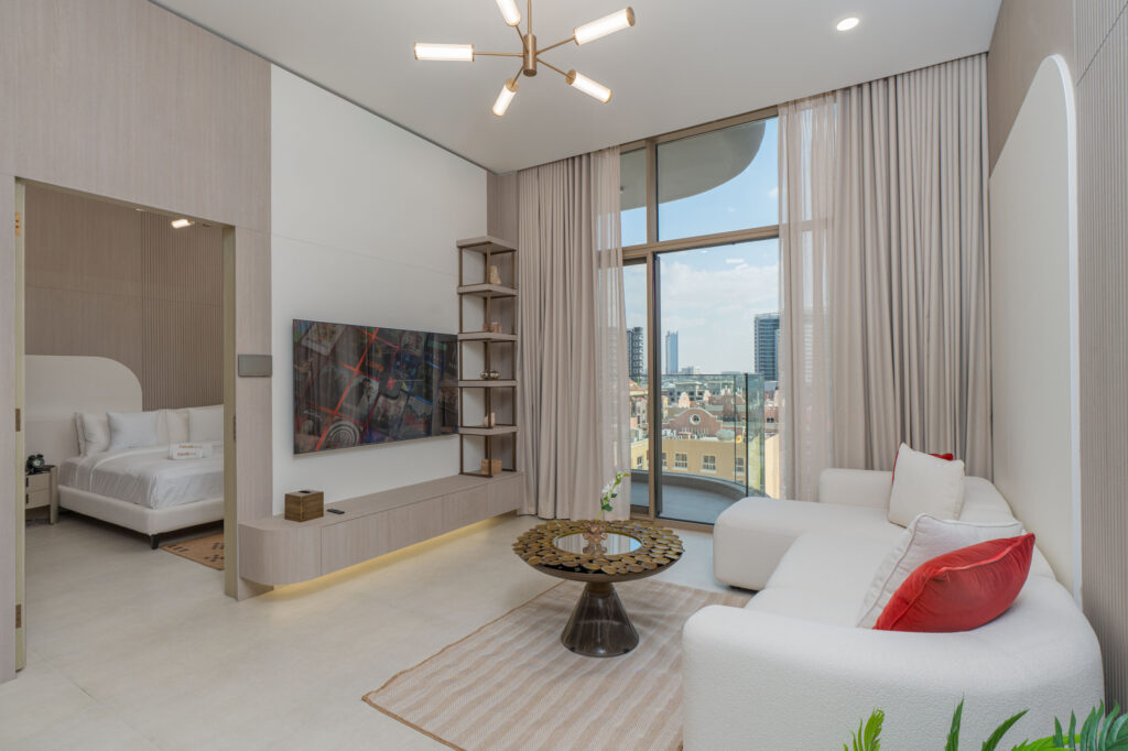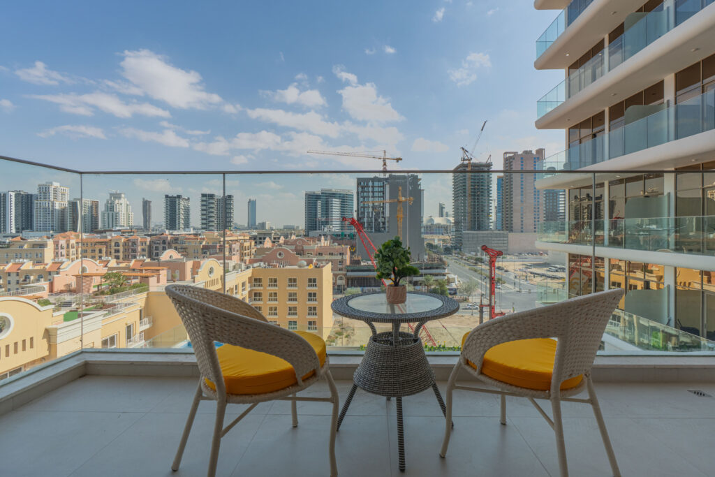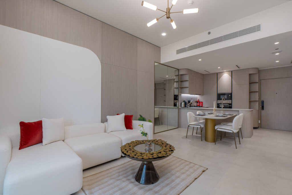 haus & haus holiday is delighted to present this brand-new 1-Bedroom Apartment in Pearl House II, Jumeirah Village Circle (JVC).