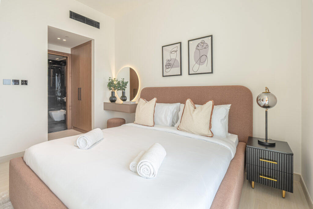 haus & haus holiday is pleased to offer this luxurious 2 Bedroom Apartment in Palace Residences, The Lagoons, Dubai Creek Harbour.Indulge in the pinnacle of luxurious living in this elegant holiday home, ideal for both convenience and relaxation.Savour the uninterrupted panoramic vistas of the city ...