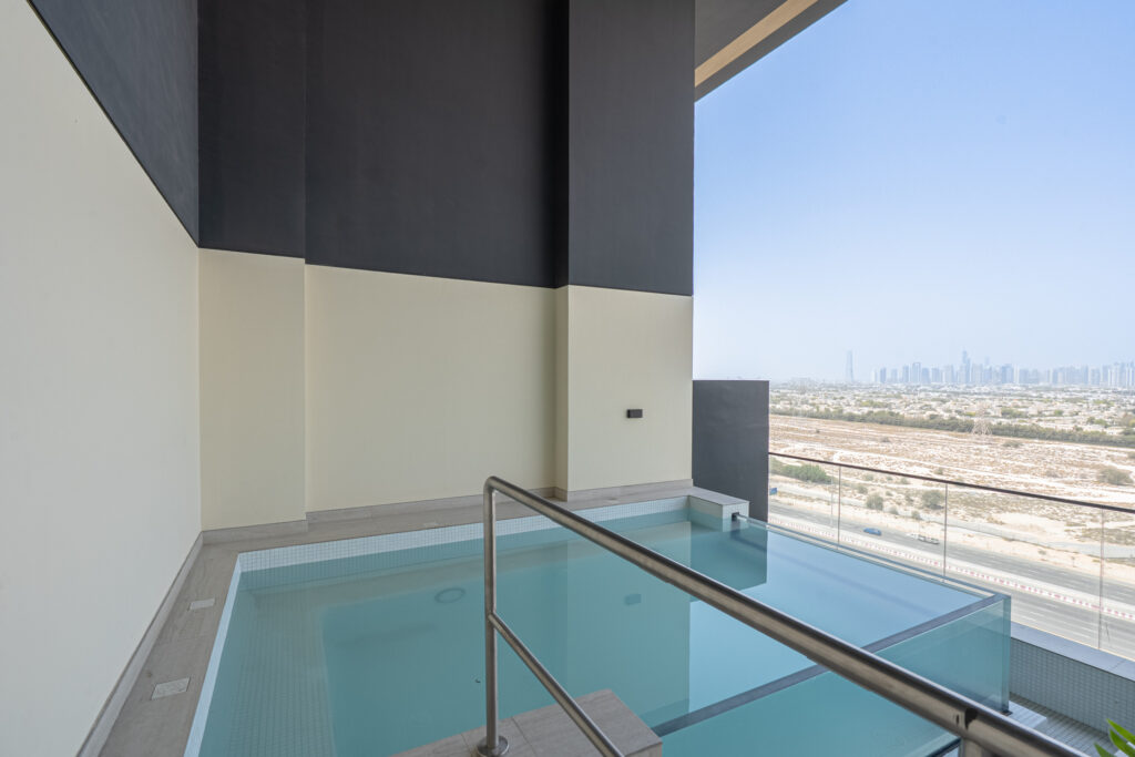 Discover your urban sanctuary, where sophistication meets comfort. This chic retreat features refined interiors and a private balcony pool, offering spectacular views of Dubai's iconic skyline. From soaking up the golden hues of morning light to admiring the glittering city lights at night, this high-floor residence offers a serene escape from the vibrant city below.