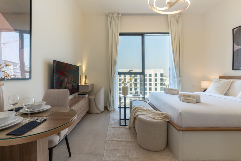 haus & haus holiday is thrilled to showcase this newly furnished Studio Apartment in Laya Heights, Dubai Studio City.This holiday home's neutral hues and stylish furniture gives you a contemporary and relaxed space. Everything is thoughtfully envisioned to make your everyday more convenient.High...