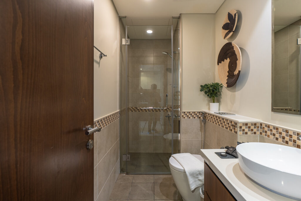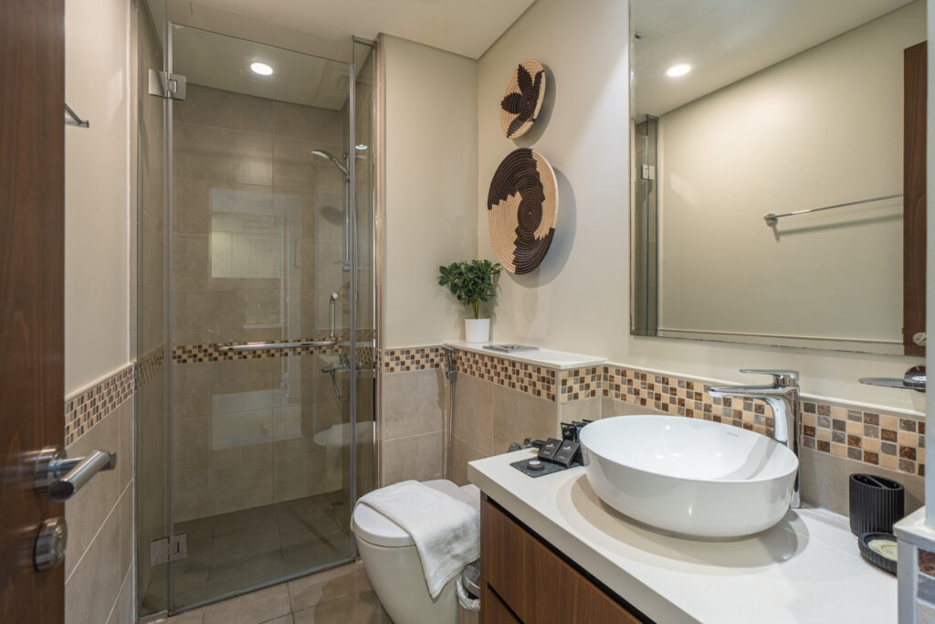 • Sleek bathroom with shower