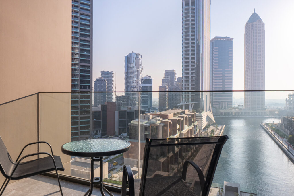 • Compact balcony ideal for relaxing and taking in the Dubai Canal and skyline views