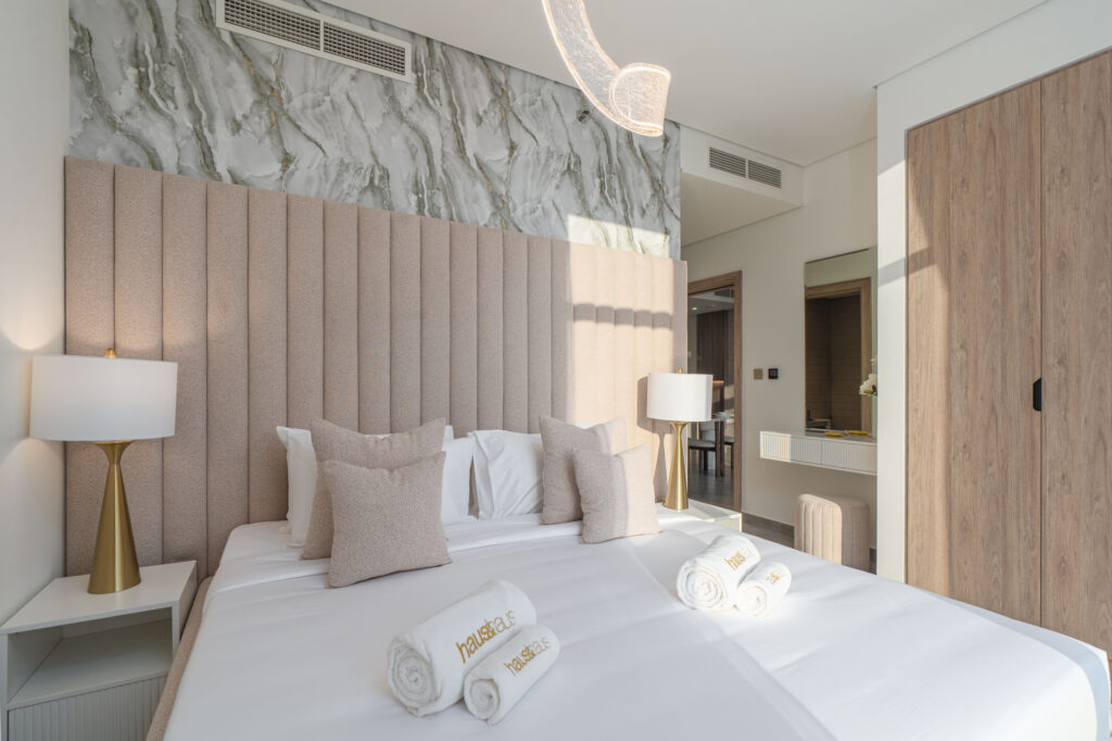 haus & haus holiday is proud to present this luxurious 2-Bedroom Apartment in Peninsula One, perfectly located in the vibrant heart of Business Bay.