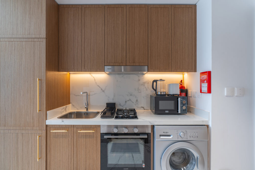 • Fully equipped modern kitchen with appliances and utensils