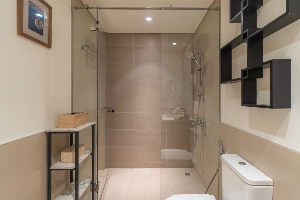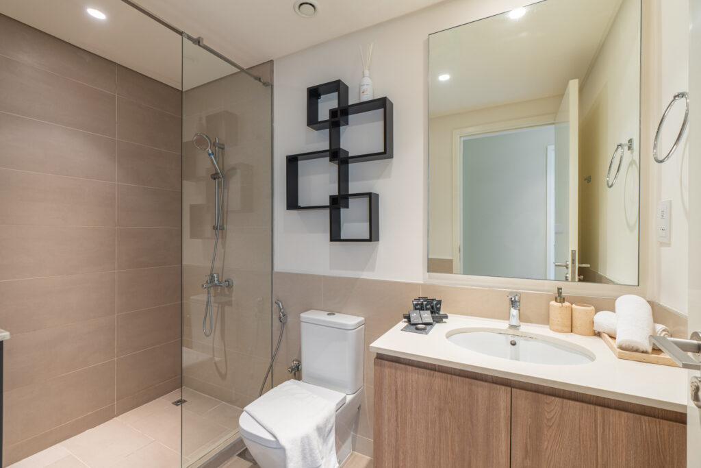 • Modern bathroom with sleek fittings