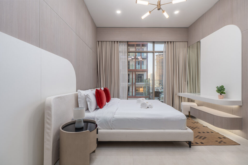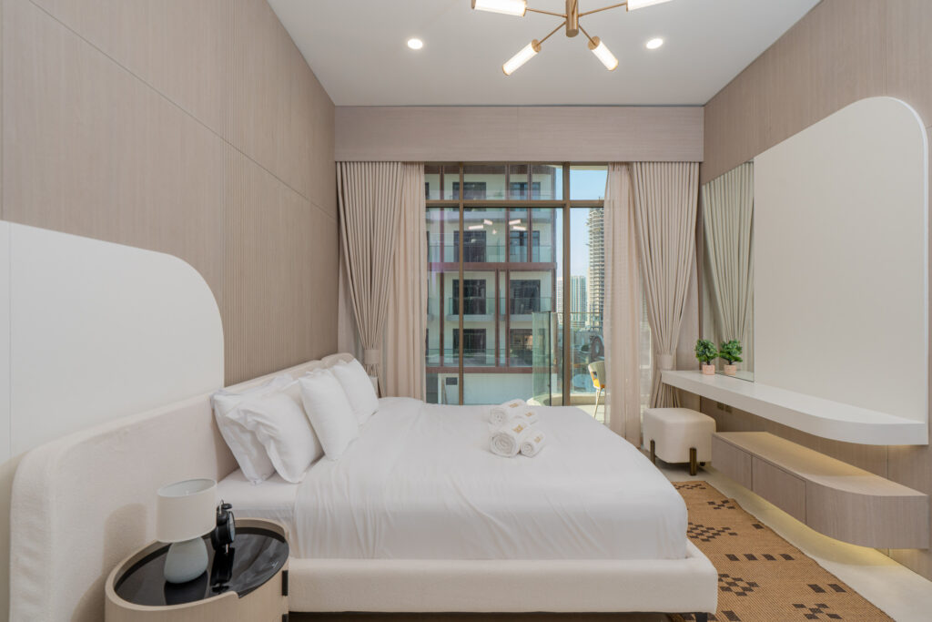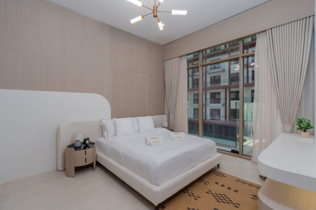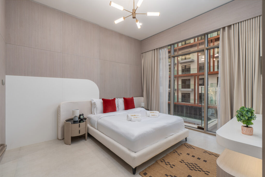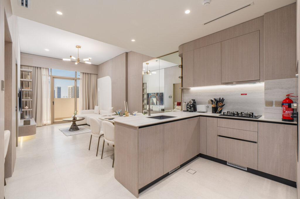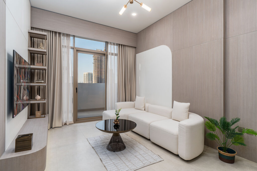 haus & haus holiday is delighted to present this brand-new 1-Bedroom Apartment in Pearl House II, Jumeirah Village Circle (JVC).