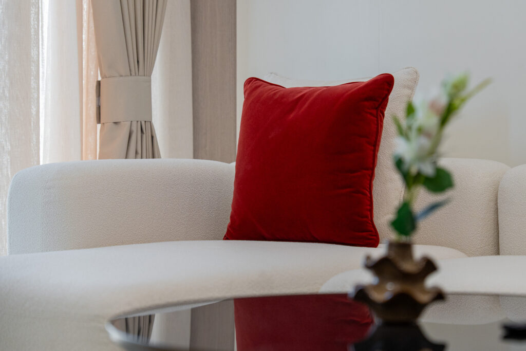 • Elegant living area with a comfortable sofa and smart TV
