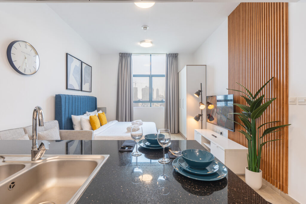 haus & haus holiday is pleased to present this delightful Studio Apartment in RMT Residences, located in Jumeirah Village Circle (JVC), a secure, gated community with a family-friendly atmosphere surrounded by greenery.