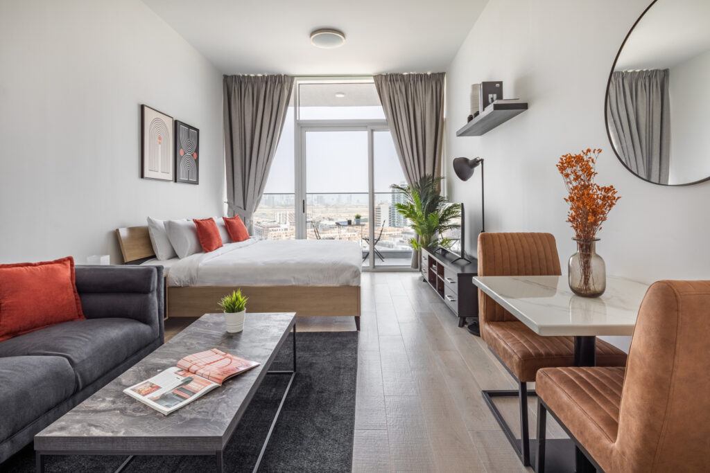 haus & haus holiday is excited to offer this bright and stylish studio apartment in Bloom Heights, Jumeirah Village Circle – a perfect blend of comfort, convenience, and scenic views.