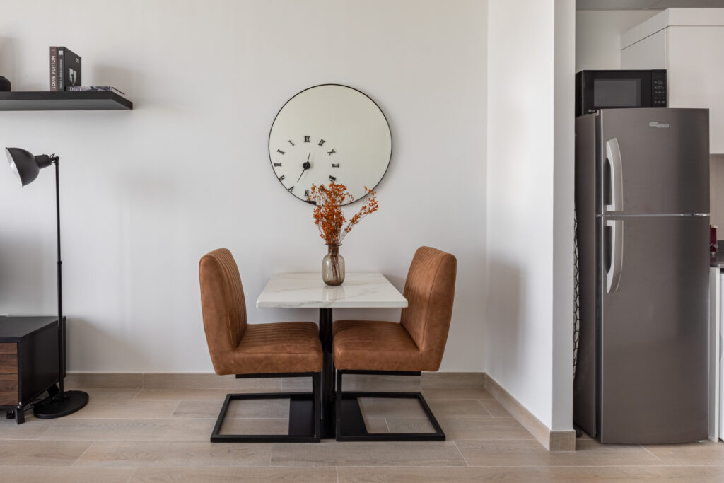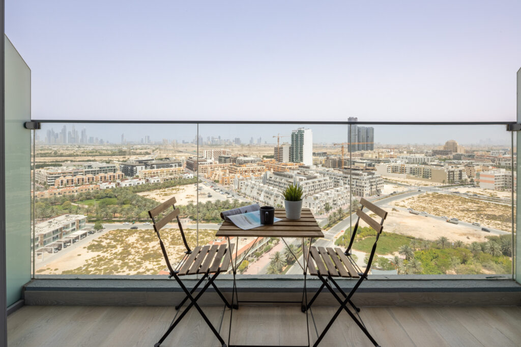 Situated on a high floor, this sleek space offers stunning views of Dubai’s skyline from the balcony. The interiors are thoughtfully furnished, and the building features premium amenities that cater to both short and long stays.