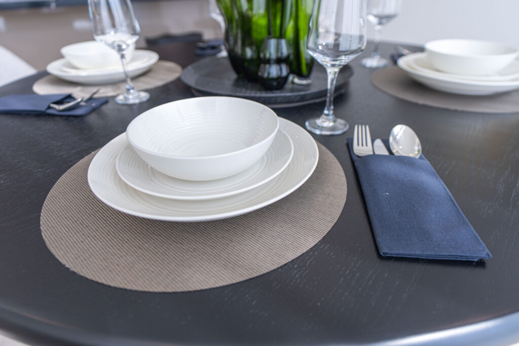 • Chic dining space perfect for intimate meals or relaxed gatherings