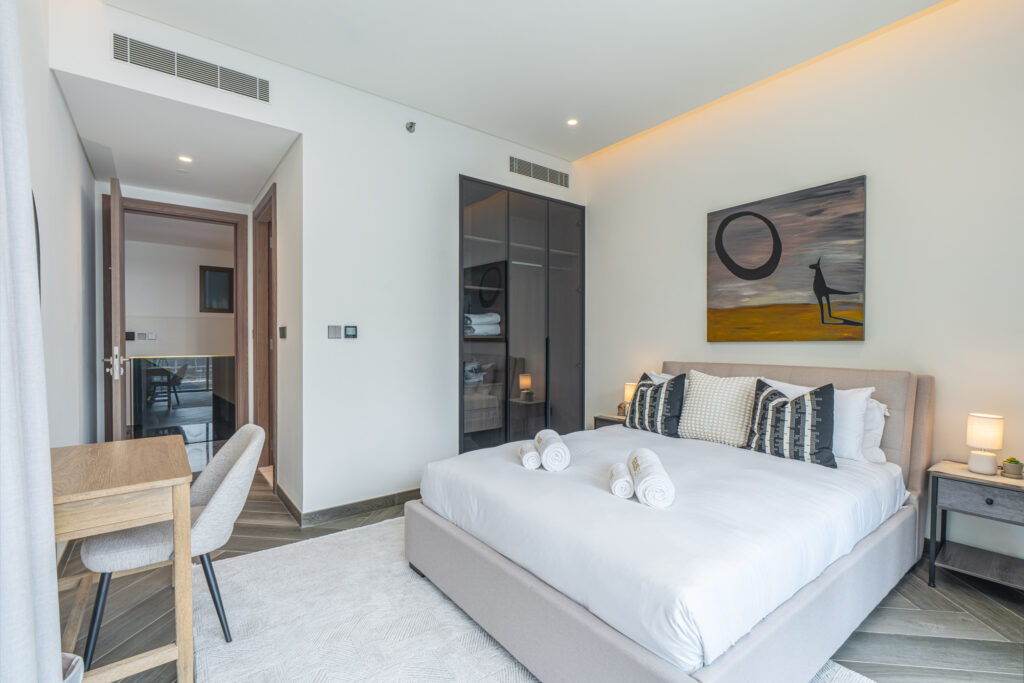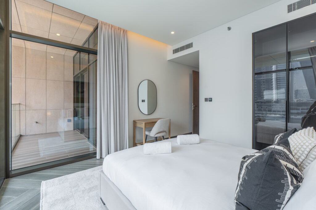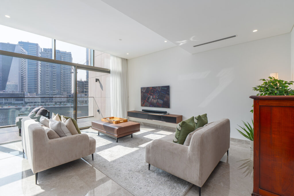 Designed for luxury and comfort, this stunning residence boasts double-height ceilings, stylish interiors, and uninterrupted views of the shimmering Dubai Canal. Every corner reflects a refined life style, making it the perfect escape for guests who appreciate exclusivity, comfort, and iconic city views.