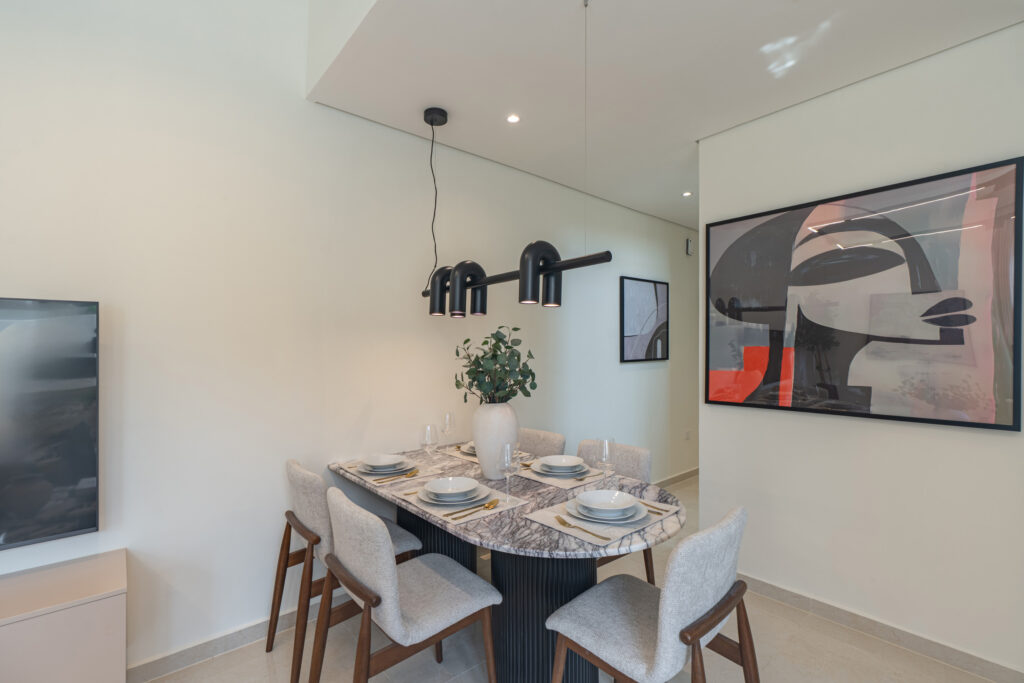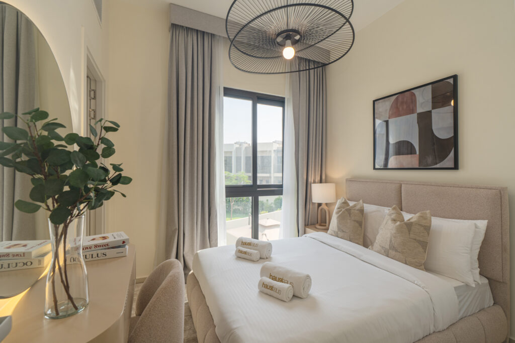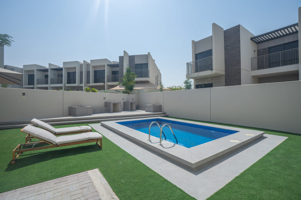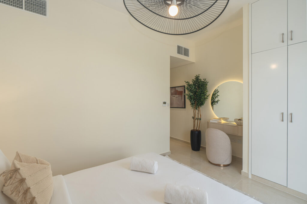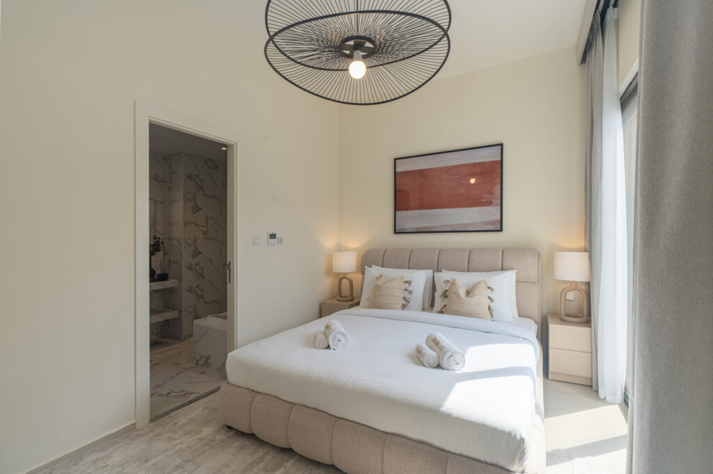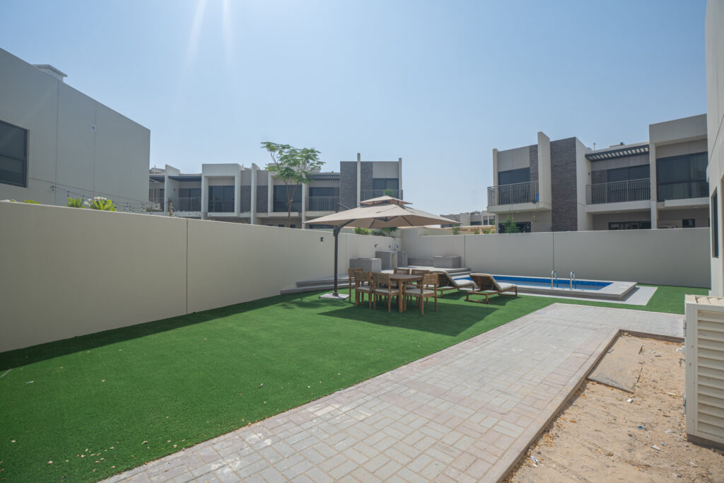 This contemporary townhouse combines comfort and style with bright open spaces, a fully equipped kitchen, and a private garden and swimming pool ideal for outdoor dining or quiet evenings. Set within a tranquil community, guests can enjoy access to modern facilities while being just a short drive from Dubai’s main attractions.