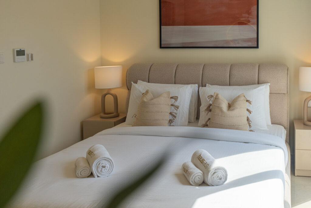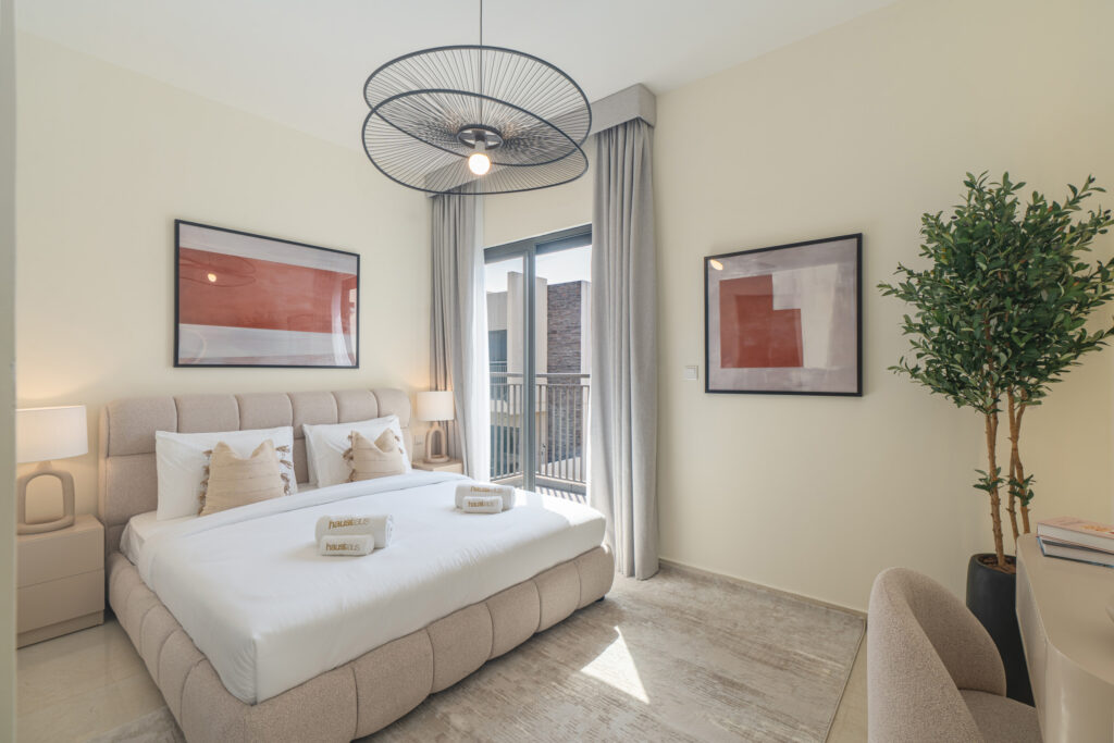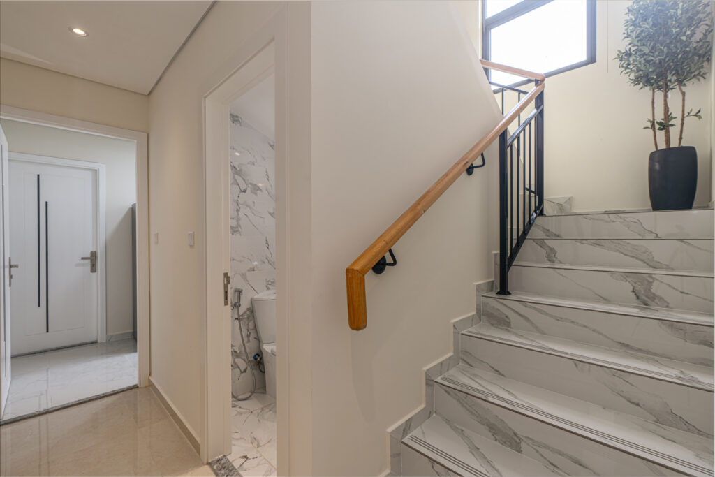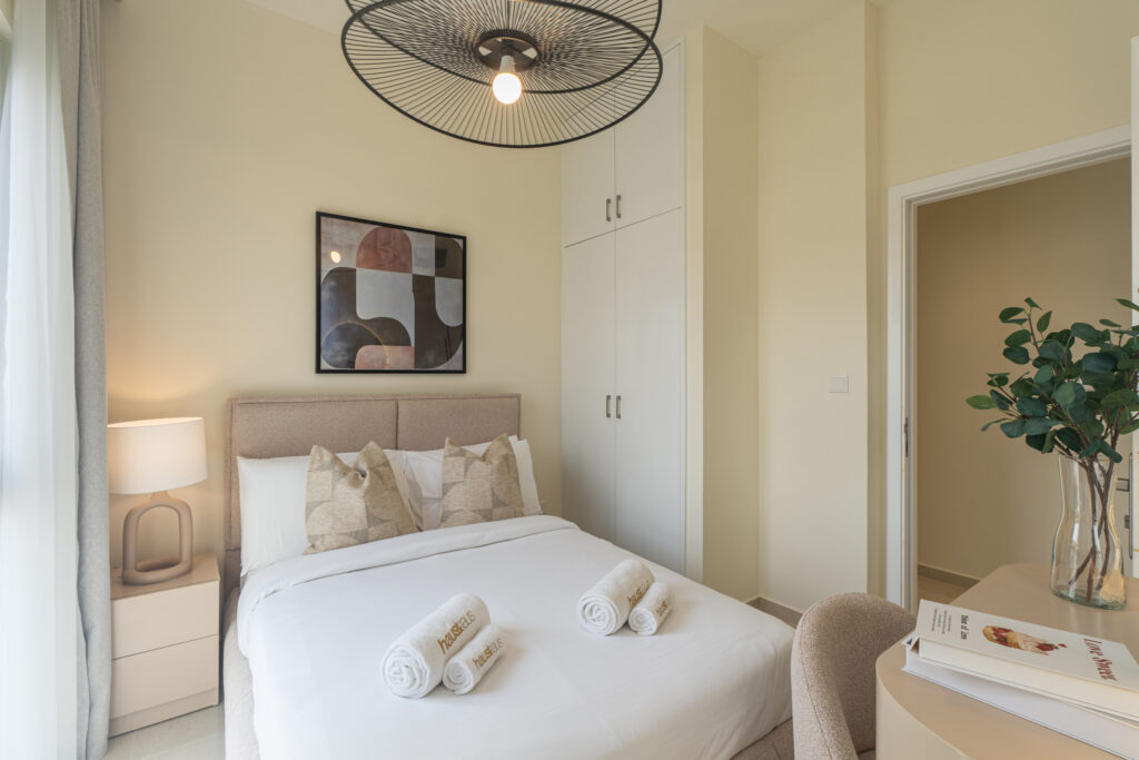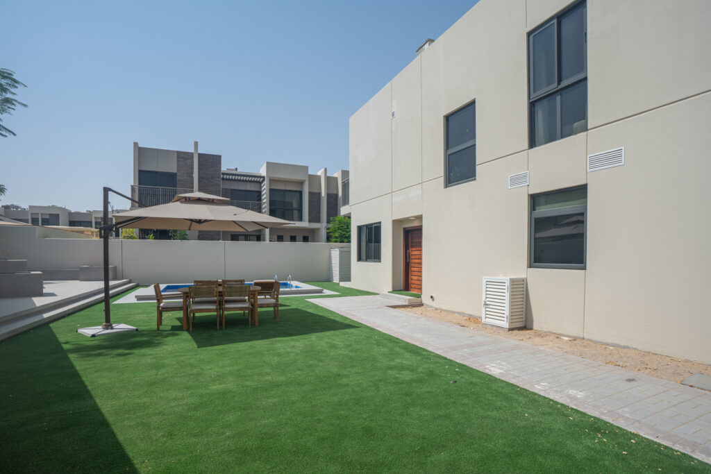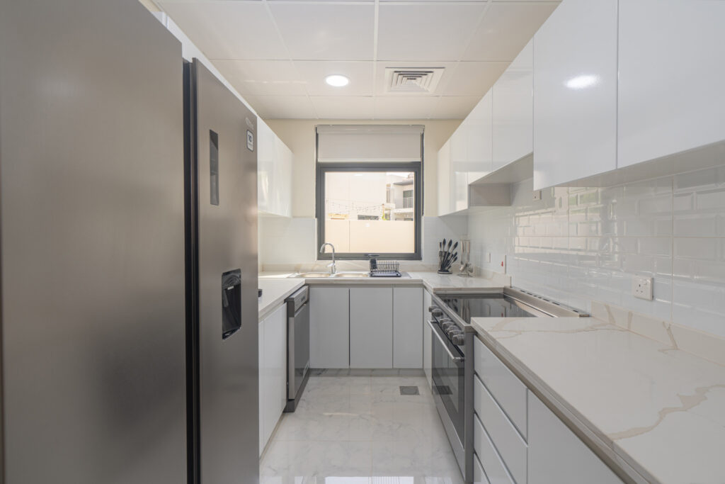 This contemporary townhouse combines comfort and style with bright open spaces, a fully equipped kitchen, and a private garden and swimming pool ideal for outdoor dining or quiet evenings. Set within a tranquil community, guests can enjoy access to modern facilities while being just a short drive from Dubai’s main attractions.