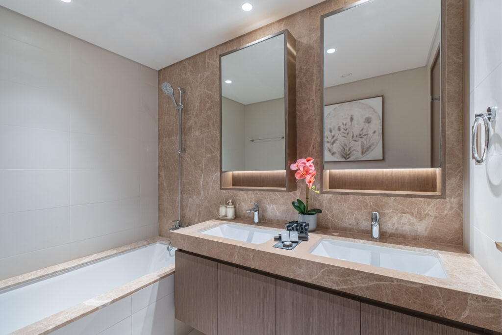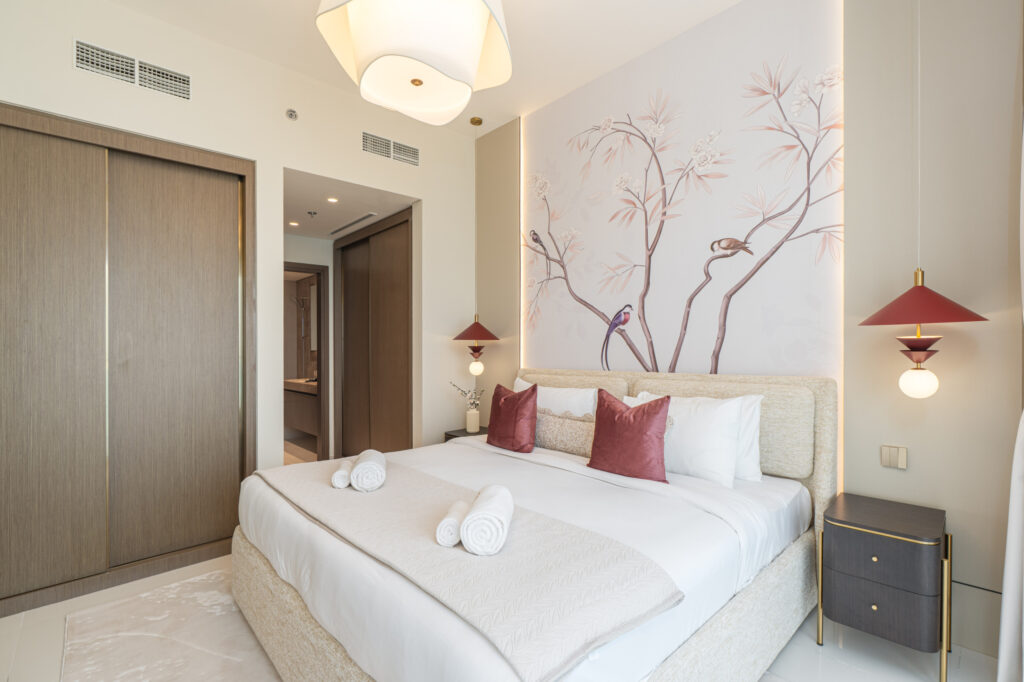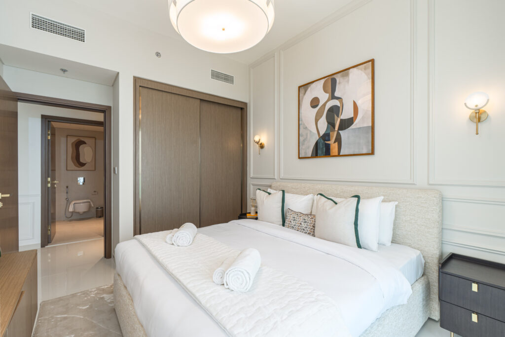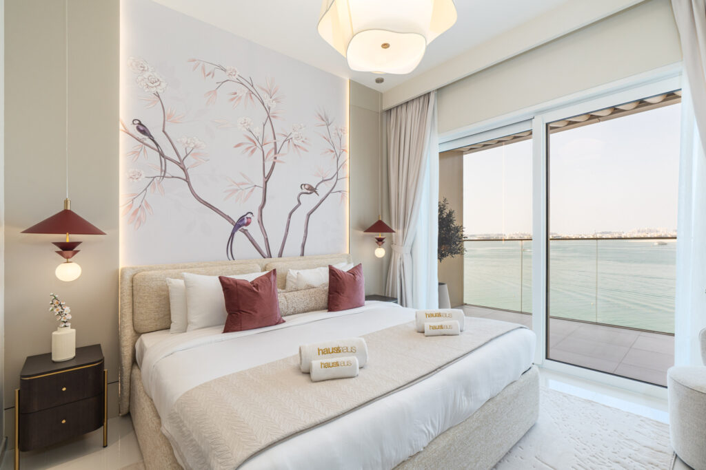 haus & haus holiday proudly presents this luxurious 2 Bedroom Apartment in Grand Bleu Tower 2, Emaar Beachfront — an elegant seaside retreat inspired by the timeless sophistication of Elie Saab.