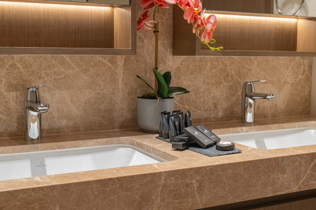 • High-speed Wi-Fi, coffee maker, iron, hairdryer, safe, toiletries, first-aid kit