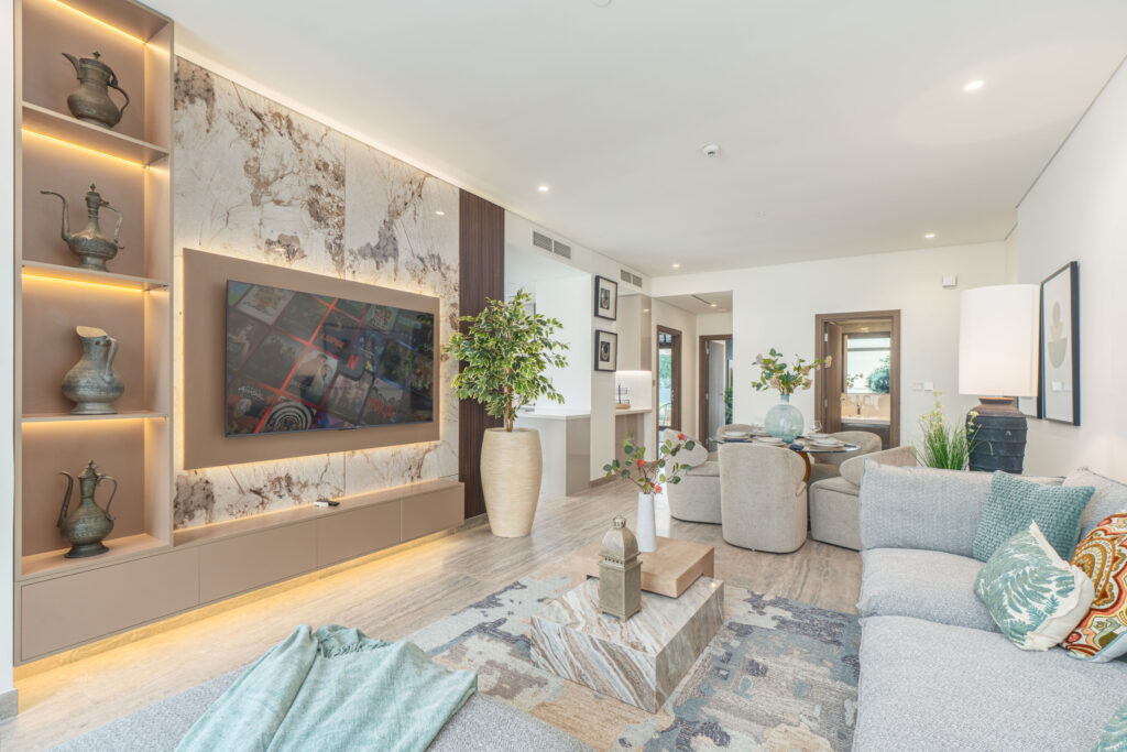 • Stylish living area with plush seating and Smart TV