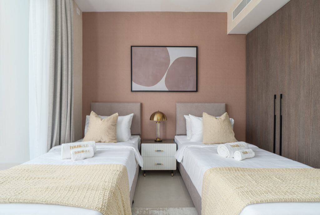Set within one of Dubai’s most popular family communities, guests can enjoy peaceful surroundings, landscaped pathways, community parks, and access to world-class amenities just moments away.