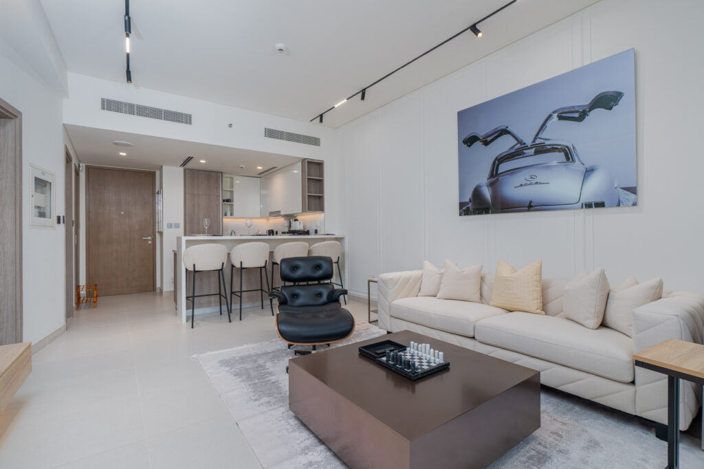 • Design – a modern residential tower with contemporary architecture, open-plan layouts, and floor-to-ceiling windows designed to maximise Marina views