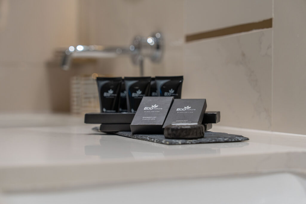 • High-speed Wi-Fi, iron, coffee maker, hairdryer, safe, toiletries, and first-aid kit