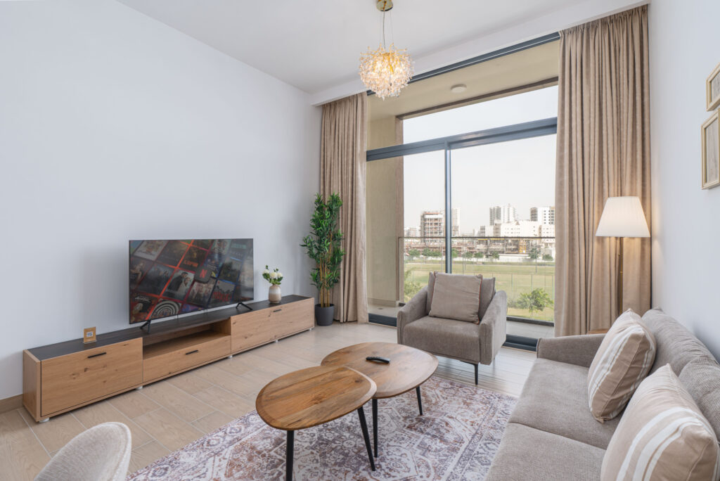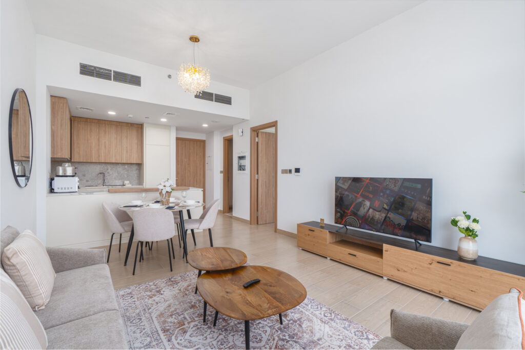 This bright and stylish home blends modern design with everyday comfort — perfect for travellers seeking a relaxing escape away from the city’s bustle while staying within easy reach of Dubai’s main attractions. Enjoy cosy interiors, a well-equipped kitchen, and a private balcony overlooking the peaceful surroundings.