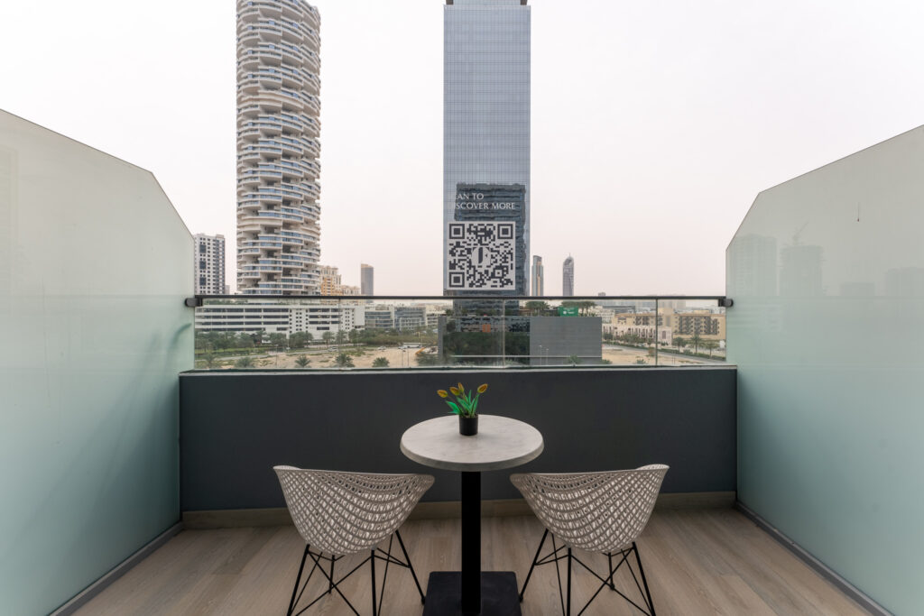 Perfect for solo travellers or couples, this thoughtfully designed studio offers a peaceful space to relax, work, or explore the city from. It features an open-plan layout, a fully fitted kitchen, and a private balcony with a calming pool view. Situated in a quiet residential building in JVC, you’re just minutes away from parks, shops, and Circle Mall.