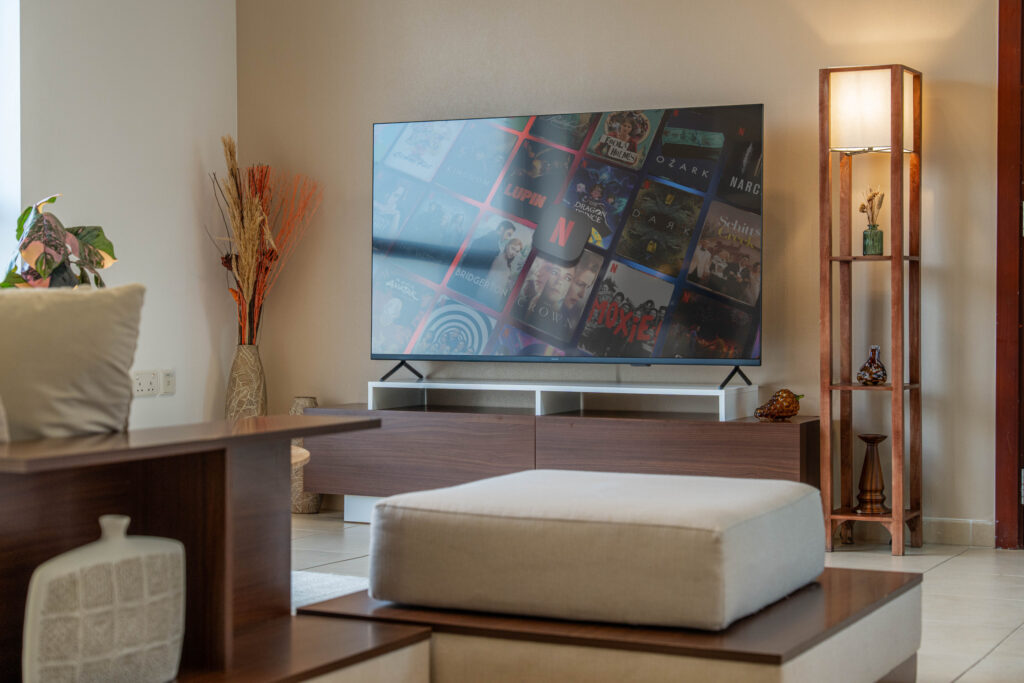 • Large living and dining area with comfortable seating and smart TV