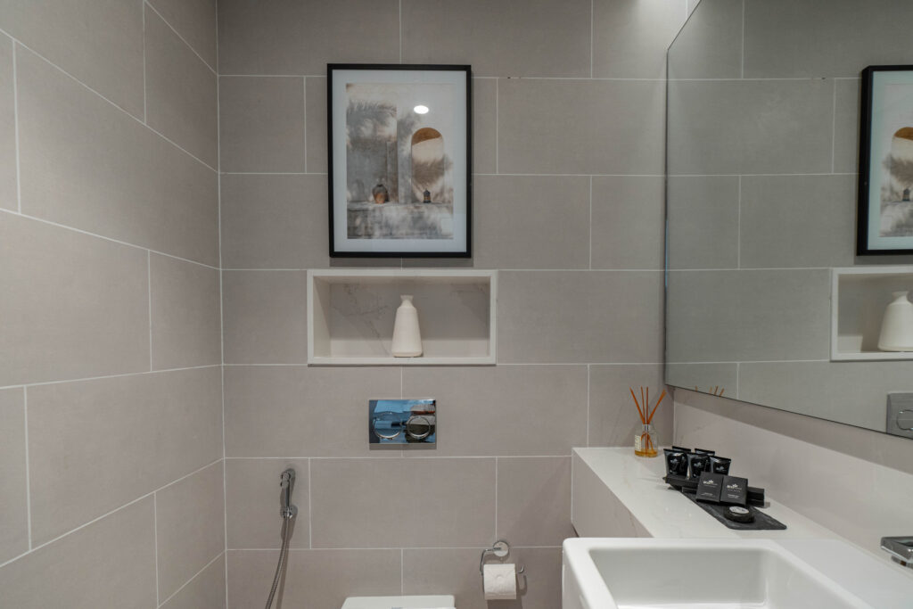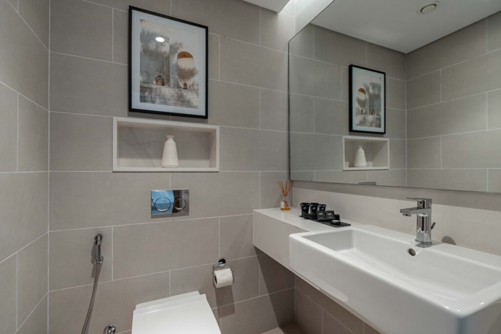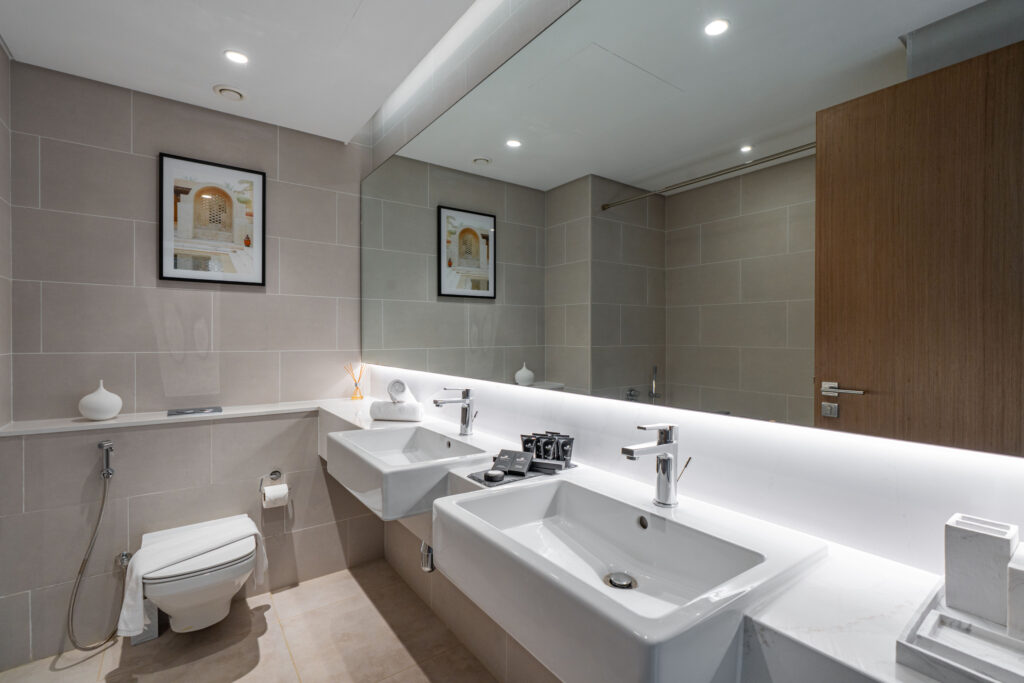 • Design – A sleek waterfront design with glass façades, minimalist interiors, and serene, nature-inspired finishes.