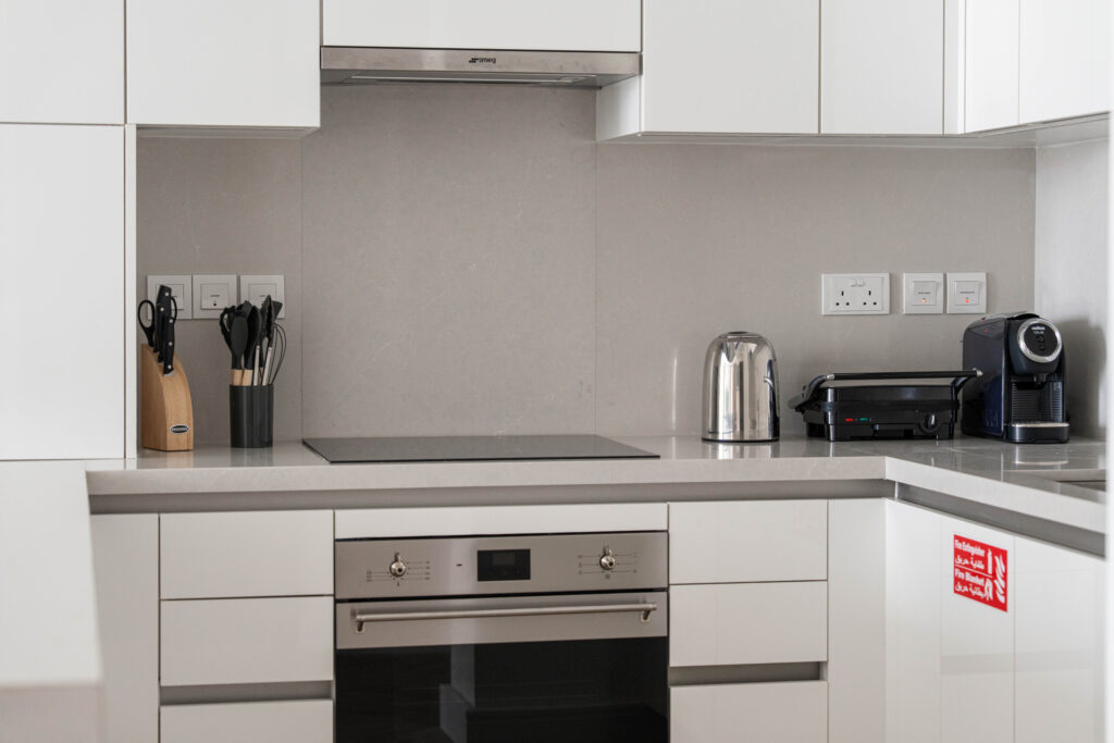 • Spacious open-plan kitchen with contemporary design and sleek modern finishes