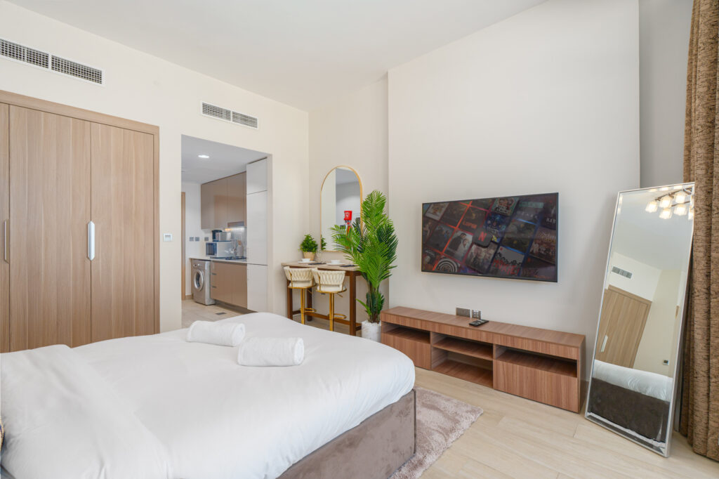 Step into a cosy yet stylish retreat designed for comfort and elevated city living. This thoughtfully furnished studio blends modern aesthetics with warm accents, creating an inviting atmosphere perfect for solo travellers or couples seeking a chic Dubai escape.