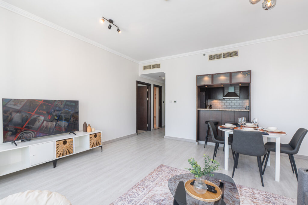 haus & haus holiday is delighted to present this beautifully upgraded 1 Bedroom Apartment in Marina Quays West, perfectly positioned in the heart of Dubai Marina. This stylish home blends comfort, elegance, and waterfront living—ideal for guests seeking a serene yet connected holiday experience.