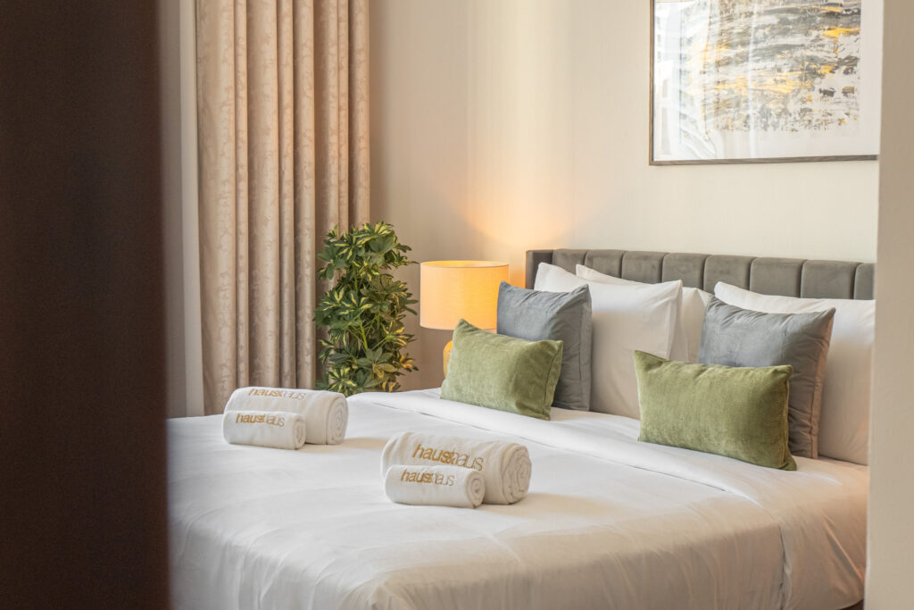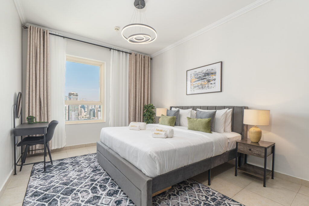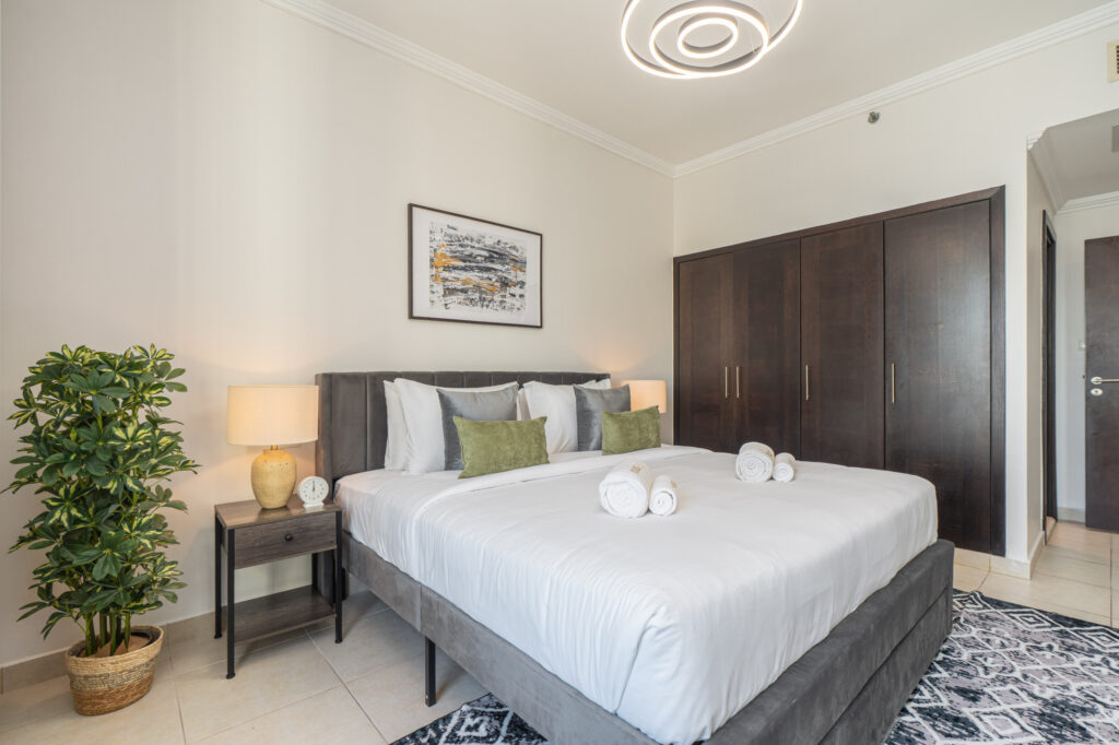 • Spacious bedroom with premium bedding